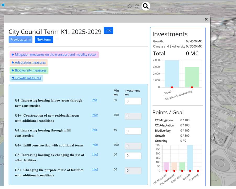 - As a result of the rich research-based background information on the current urban planning policies and legislation in Helsinki provided by the game, participants with various backgrounds gain experience on the complexity of urban planning decision-making and become familiar with the catalogue of measures needed for implementing the City’s current strategic targets.