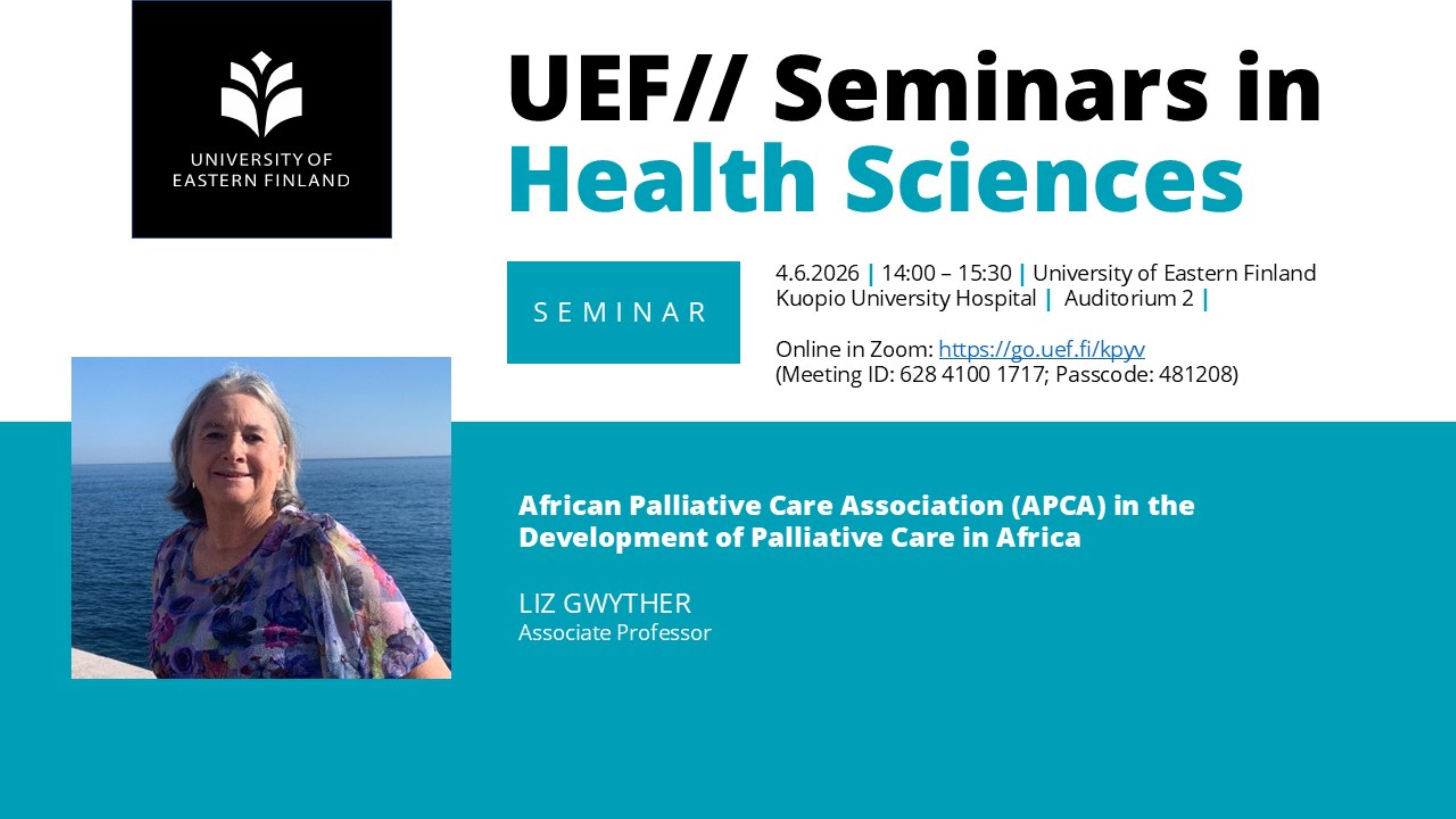 Seminars in Health Sciences is a seminar series organized by the Faculty of Health Sciences doctoral programmes and targeted to researchers, teachers, and students. The seminars are open for everyone interested. Welcome!