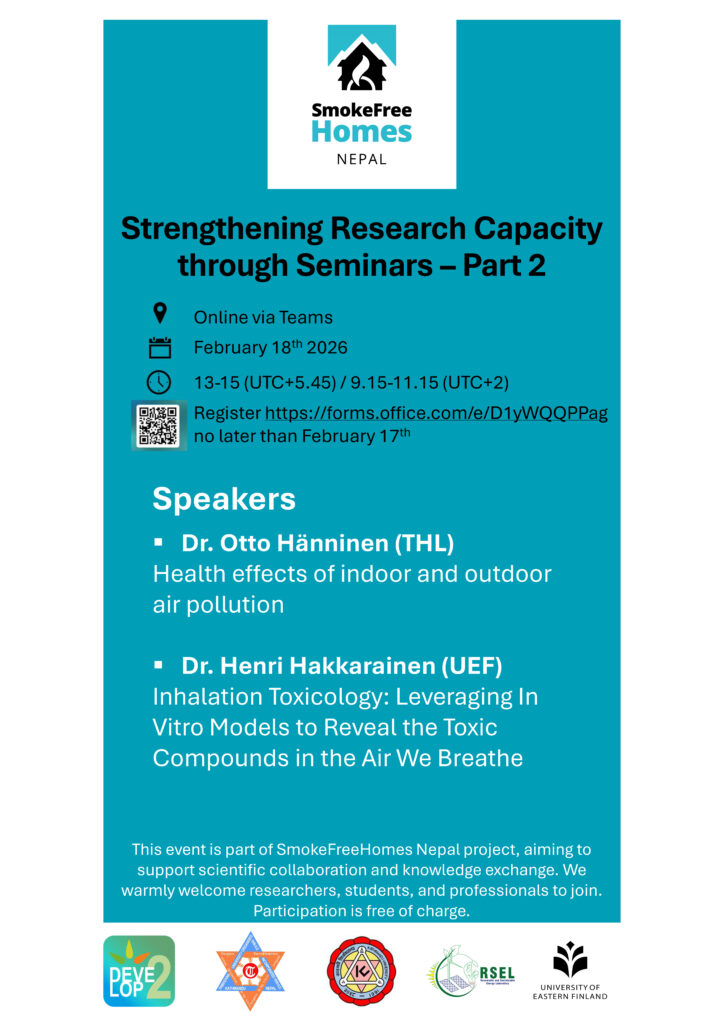 This event is part of SmokeFreeHomes Nepal project, aiming to support scientific collaboration and knowledge exchange. We warmly welcome researchers, students, and professionals to join. Participation is free of charge.