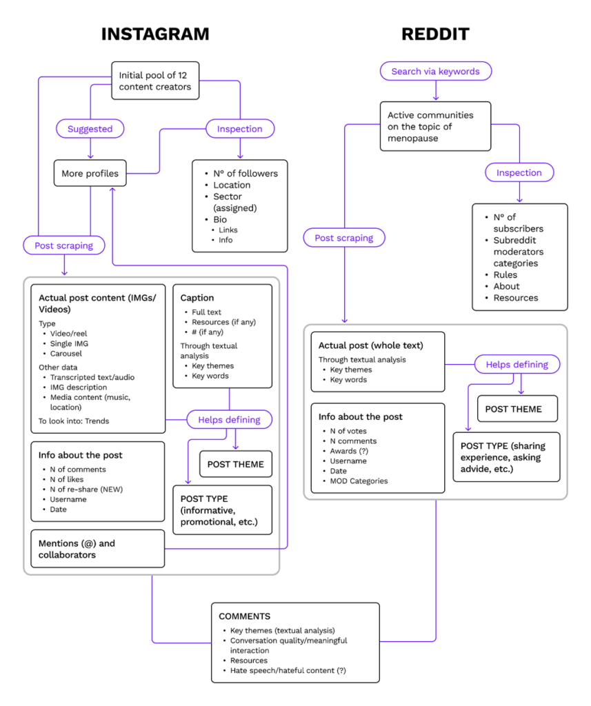 It was therefore natural for me to choose these two platforms as starting points. On Instagram, I will focus on content creators—activists, politicians, healthcare professionals—who have built communities of followers around menopause and ageing. On Reddit, I will focus on the plural rather than the singular, exploring communities where people seek help, resources, sympathy, and solutions.