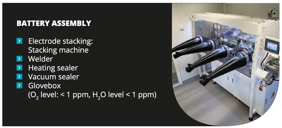 Our cutting-edge facility is dedicated to the development, assembly, and testing of coin and pouch cells for any needs related to RDI activities of battery materials. Serving both academia and industry, we act as a bridge for innovation, driving advances in sustainable, safe, and high-performance batteries. From material evaluation to cell prototyping and advanced performance testing, we provide comprehensive support that accelerates the transition to a cleaner energy future.