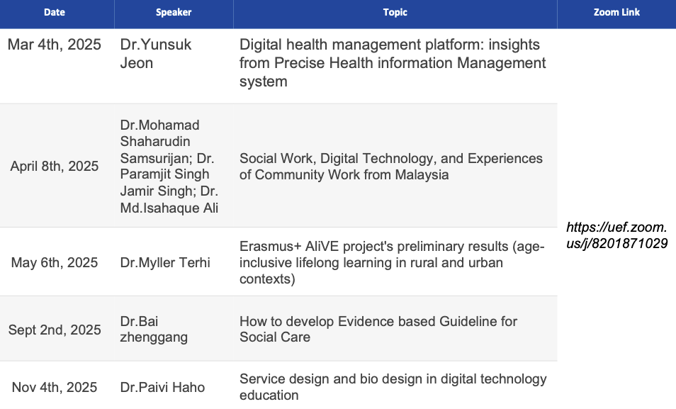 SRCWT will hold several seminars on welfare technology. You can find the preliminary schedule below: